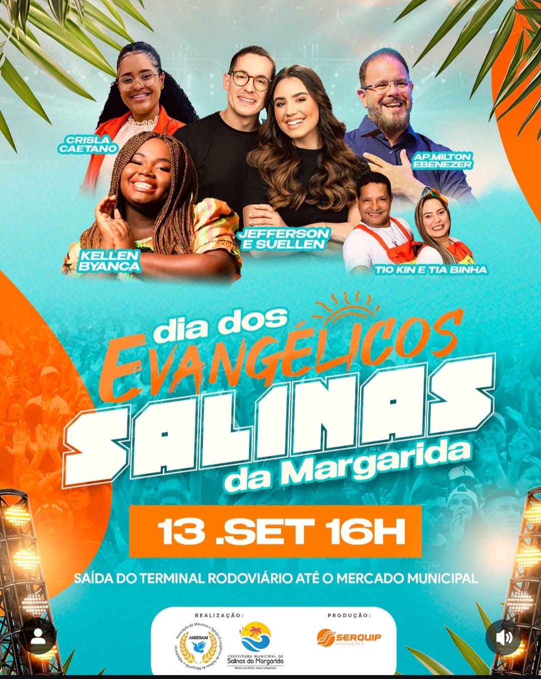 🎶 Entre as atrações confirmadas estão grandes nomes da música gospel: Crisla Caetano, Kellen Byanca, Jeferson & Suellen, Tio Kin & Tia Binha, além da ministração especial do Ap. Milton Ebenezer.