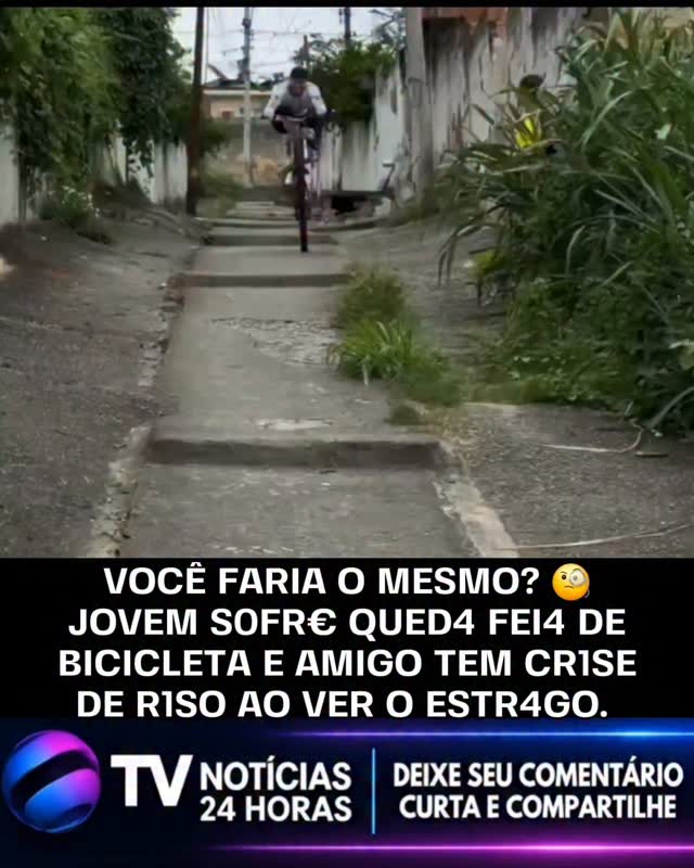AMIGO \u00c9 PRA ESSAS COISAS? \ud83e\uddd0 \n\nJovem sofre qued4 fei4 de bicicleta e amigo tem cr1se de riso ao ver o estr4go. Voc\u00ea faria o mesmo?\n\nUm v\u00eddeo que est\u00e1 circulando nas redes sociais mostra o momento exato em que um jovem tenta descer uma ladeira \u00edngreme realizando uma manobra de \