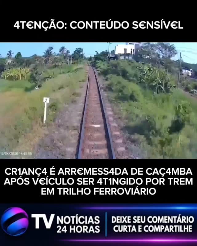 CR1ANÇ4 É ARR€MESS4DA DE CAÇ4MBA APÓS V€ÍCULO SER 4T1NGIDO POR TREM