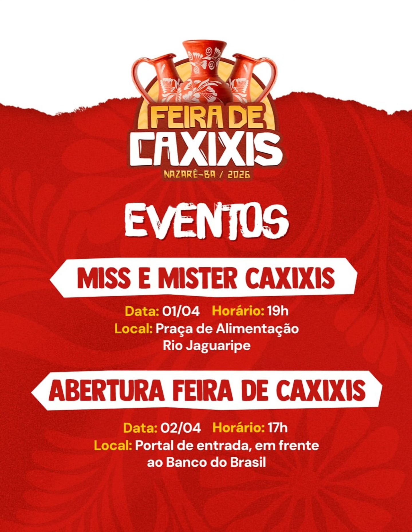 A cidade de Nazaré das Farinhas se prepara para viver mais uma edição da tradicional Feira de Caxixis, que será realizada entre os dias 2 e 5 de abril de 2026. Reconhecido como um dos eventos culturais mais importantes do estado, o encontro promete movimentar a economia local e valorizar a produção artesanal, reunindo milhares de visitantes de diversas regiões.