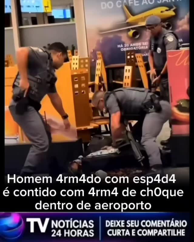 Homem 4rm4do com esp4d4 é contido com 4rm4 de choque dentro de aeroporto