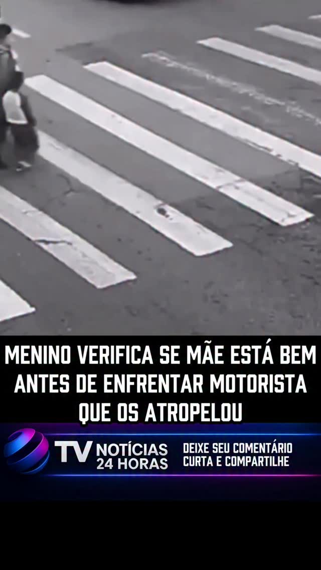 Menino verifica se mãe está bem antes de enfrentar motorista que os atropelou.