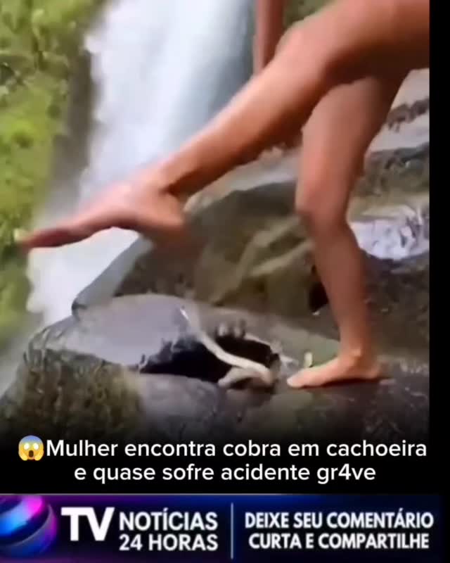 😱Mulher encontra cobra em cachoeira