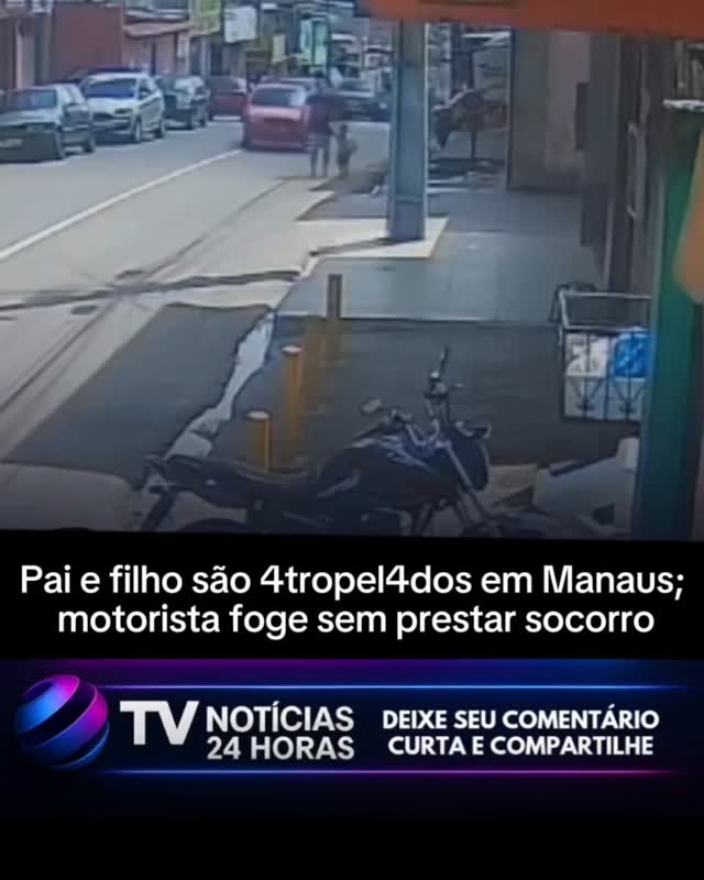 Câmeras de segurança flagraram o momento em que um homem e seu filho foram atropelados por um carro, na tarde deste domingo (06), na zona oeste de Manaus. As imagens mostram as vítimas caminhando tranquilamente quando um veículo vermelho invade a faixa contrária e os atinge violentamente.