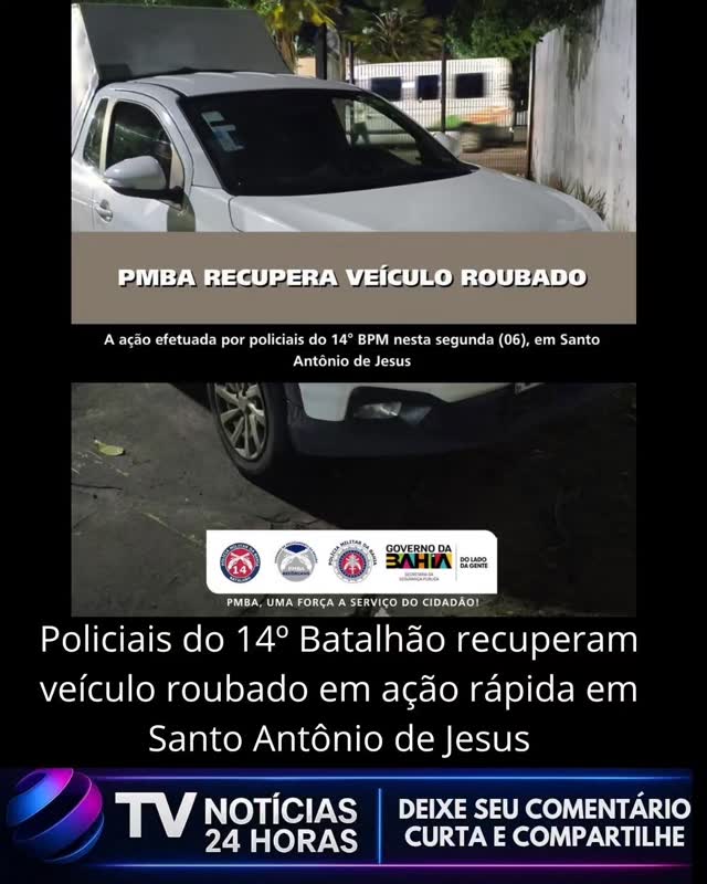 Uma ação ágil dos policiais do 14⁰ BPM resultou na recuperação de um veículo roubado na noite desta segunda-feira (6), no Recôncavo Baiano. O automóvel, um Fiat/Strada, havia sido subtraído no município de Cruz das Almas e foi localizado pouco tempo depois em Santo Antônio de Jesus.
