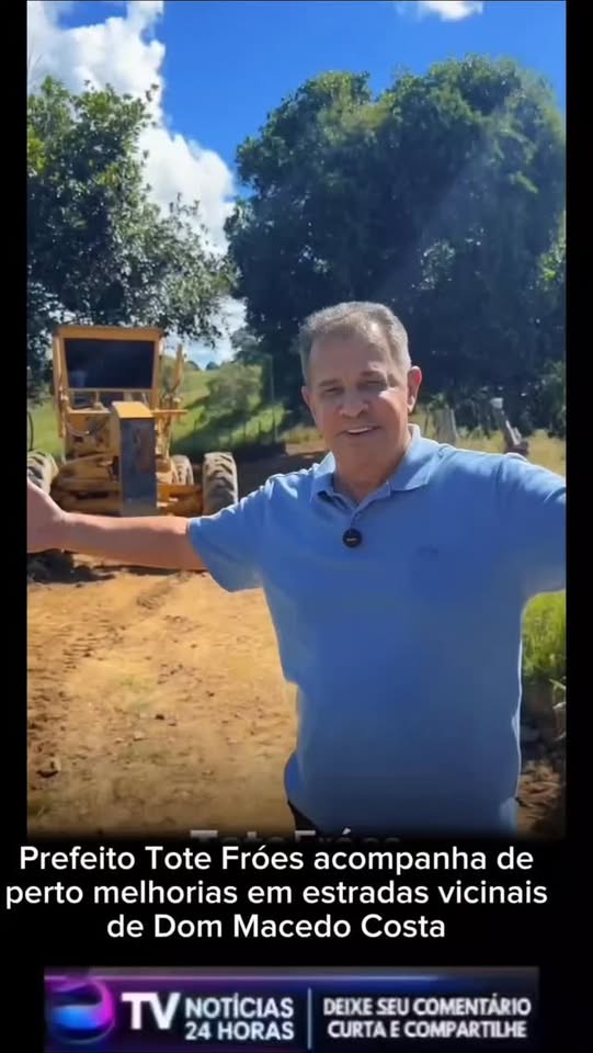 Prefeito Tote Fr\u00f3es acompanha de perto melhorias em estradas vicinais de Dom Macedo Costa\n\nInterven\u00e7\u00f5es refor\u00e7am trafegabilidade, impulsionam o escoamento da produ\u00e7\u00e3o rural e elevam a qualidade de vida no campo\n\nO prefeito de Dom Macedo Costa, Tote Fr\u00f3es, deixou o gabinete para acompanhar de perto as obras de melhoria nas estradas vicinais do munic\u00edpio, com foco na comunidade da Boa Sorte, no sentido Dom Queijo. A iniciativa integra um conjunto de a\u00e7\u00f5es voltadas \u00e0 recupera\u00e7\u00e3o e manuten\u00e7\u00e3o da malha vi\u00e1ria rural.\n\nAs interven\u00e7\u00f5es t\u00eam como principal objetivo garantir melhores condi\u00e7\u00f5es de tr\u00e1fego para moradores, produtores e transportadores que utilizam diariamente as vias, muitas vezes prejudicadas por desgaste natural e per\u00edodos de chuva. Com a requalifica\u00e7\u00e3o, a gest\u00e3o municipal busca assegurar mais seguran\u00e7a no deslocamento e efici\u00eancia no transporte de mercadorias.\n\nEm publica\u00e7\u00e3o nas redes sociais, o gestor destacou o compromisso com a zona rural e a import\u00e2ncia de aproveitar as condi\u00e7\u00f5es clim\u00e1ticas favor\u00e1veis para acelerar os servi\u00e7os. \u201cHoje foi dia de levar melhorias nas estradas da comunidade da Boa Sorte, no sentido Dom Queijo. Com a gente \u00e9 assim: cada minuto de sol importa! Vamos seguir trabalhando por toda a zona rural. Forte abra\u00e7o\u201d, afirmou.\n\nA melhoria das estradas vicinais \u00e9 considerada estrat\u00e9gica para o fortalecimento da economia local, especialmente no que diz respeito ao escoamento da produ\u00e7\u00e3o agr\u00edcola. Al\u00e9m disso, a a\u00e7\u00e3o contribui diretamente para a qualidade de vida do homem do campo, facilitando o acesso a servi\u00e7os essenciais como sa\u00fade, educa\u00e7\u00e3o e com\u00e9rcio.\n\nCom a presen\u00e7a ativa do prefeito nas frentes de trabalho, a gest\u00e3o refor\u00e7a a prioridade dada \u00e0s demandas da popula\u00e7\u00e3o rural e sinaliza a continuidade dos investimentos em infraestrutura ao longo do munic\u00edpio.\n#tvnoticias24horas#totefroes#dommacedocosta\n#InfraestruturaRural\n#DomMacedoCosta\nEstradasVicinais\nHomemDoCampo\nDesenvolvimentoRural”,”delight_ranges”:[],”image_ranges”:[],”inline_style_ranges”:[],”aggregated_ranges”:[],”ranges”:[{“entity”:{“__typename”:”Hashtag”,”__isEntity”:”Hashtag”,”url”:”https:\/\/www.facebook.com\/hashtag\/tvnoticias24horas?__eep__=6″,”mobileUrl”:”https:\/\/m.facebook.com\/hashtag\/tvnoticias24horas”,”__isNode”:”Hashtag”,”id”:”2632535806783861