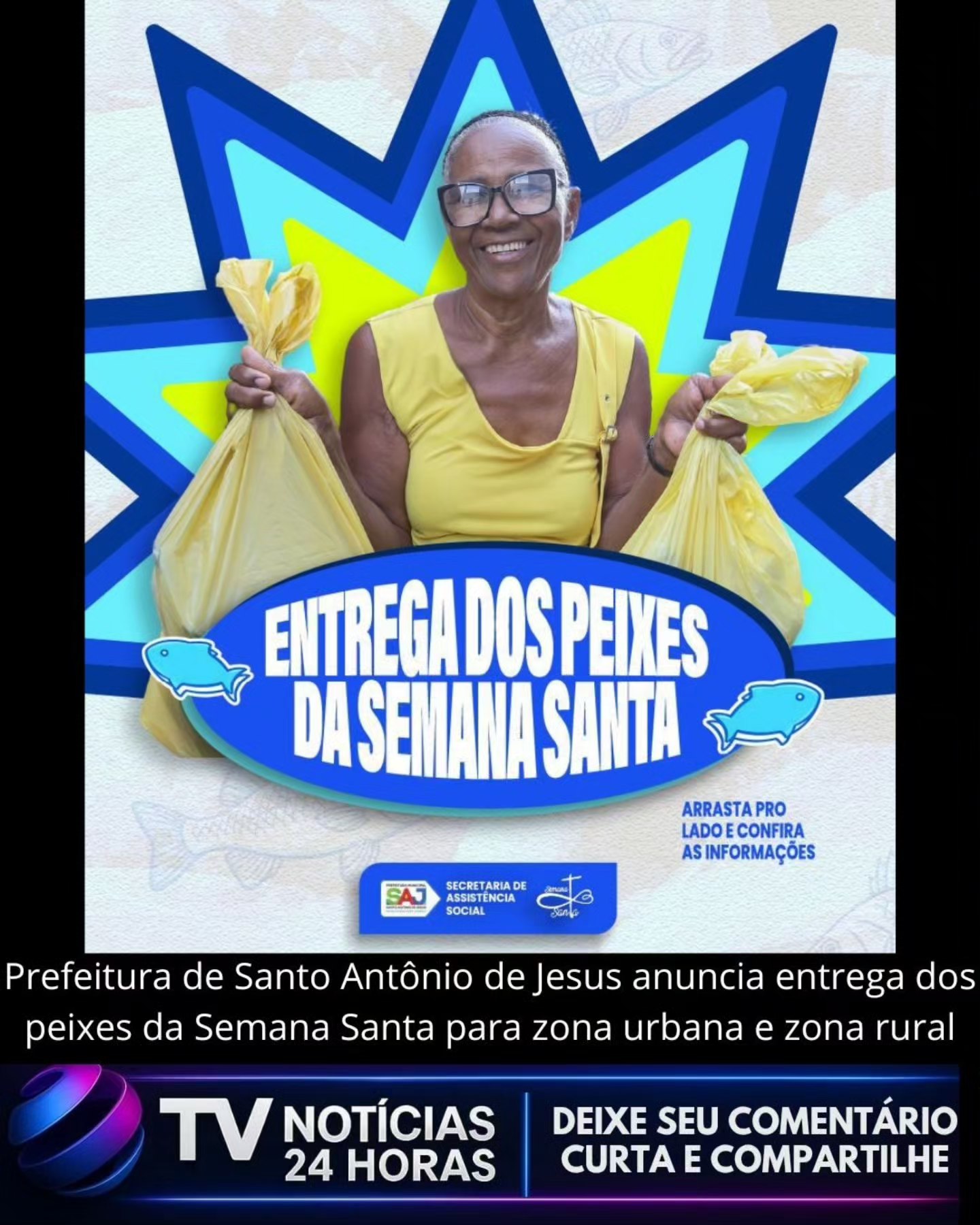 A Prefeitura Municipal de Santo Antônio de Jesus, por meio da Secretaria Municipal de Assistência Social (SMAS), realizará mais uma edição da tradicional entrega dos peixes da Semana Santa, reforçando o compromisso da gestão com o cuidado às famílias que mais precisam. A ação contempla beneficiários regularmente cadastrados nos programas socioassistenciais do município.