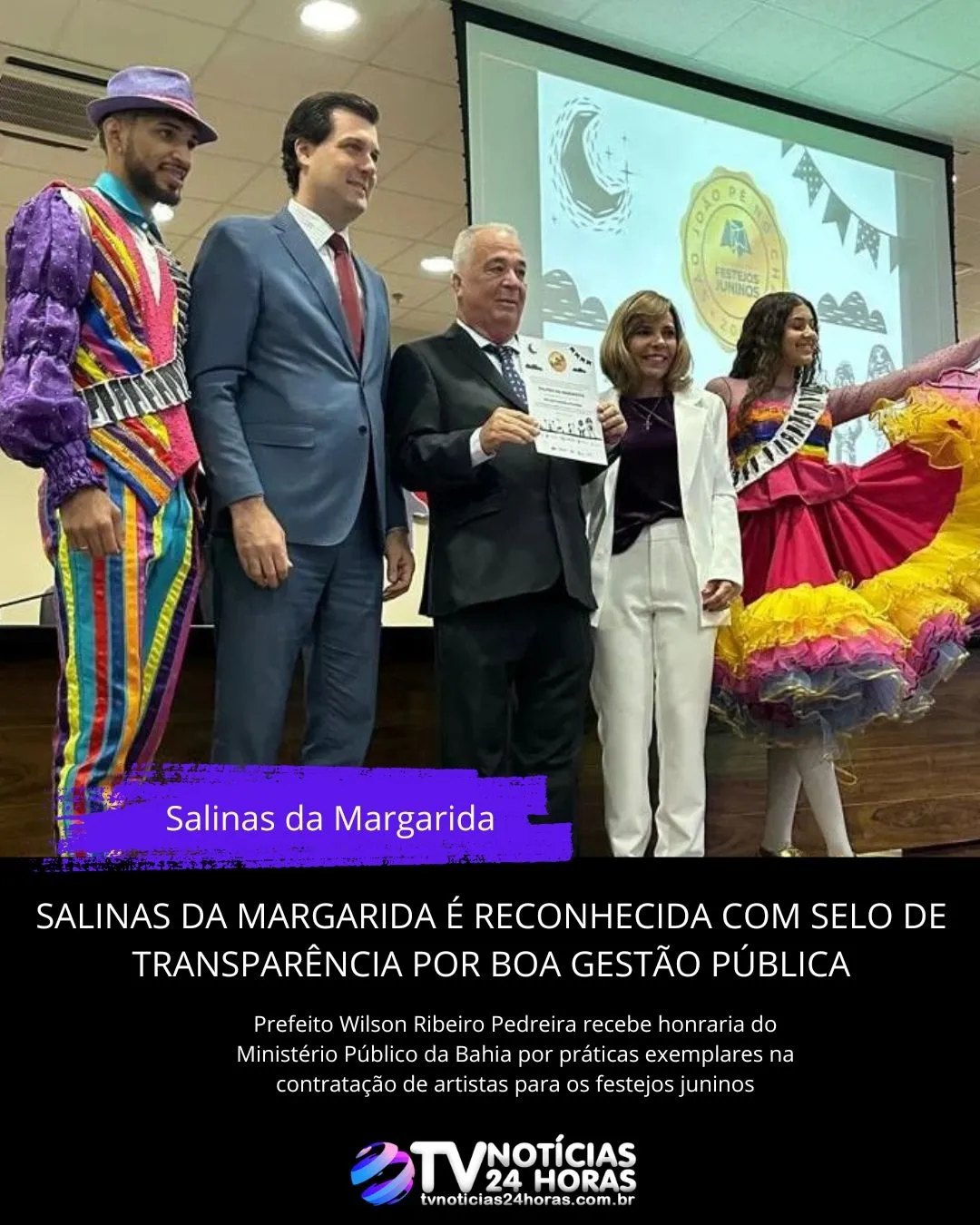 Nesta quinta-feira, 13 de junho de 2024, o município de Salinas da Margarida foi agraciado com o Selo de Transparência, uma honraria concedida pelo Ministério Público do Estado da Bahia. A entrega do selo, realizada pelos promotores Frank Ferrari e Rita Tourinho, aconteceu em uma cerimônia que destacou o compromisso do município com a transparência na gestão pública, especialmente na prestação de informações sobre as contratações de artistas para os tradicionais festejos juninos.