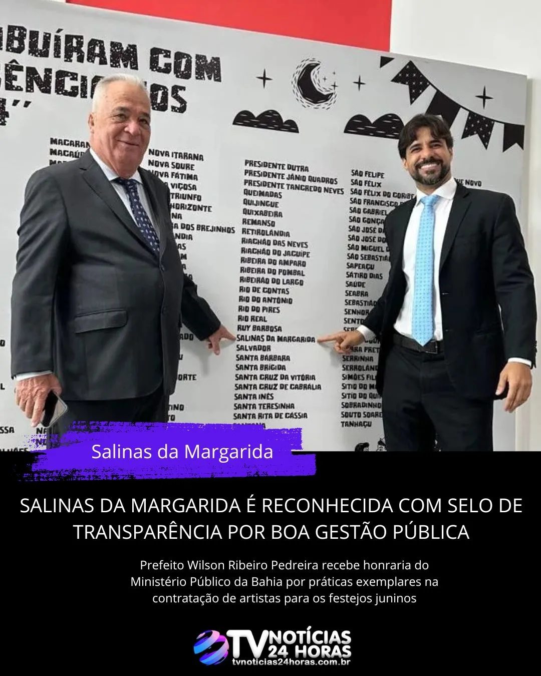 O prefeito Wilson Ribeiro Pedreira recebeu a premiação em nome do município, celebrando a parceria com o Ministério Público e reafirmando o compromisso da administração municipal com a transparência e a boa governança. A iniciativa contou com o apoio do Tribunal de Contas do Estado da Bahia (TCE), Tribunal de Contas dos Municípios do Estado da Bahia (TCM), Rede de Controle da Gestão Pública na Bahia, União dos Municípios da Bahia (UPB) e União das Controladorias Internas da Bahia (UCIB).