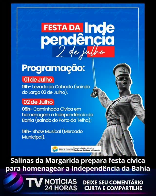 A cidade de Salinas da Margarida se prepara para celebrar uma das datas mais simbólicas da história do estado: o 2 de Julho, que marca a Independência da Bahia. A prefeita Professora Mara fez um convite especial à população, reforçando a importância da participação popular nas homenagens que valorizam a luta e a identidade do povo baiano.