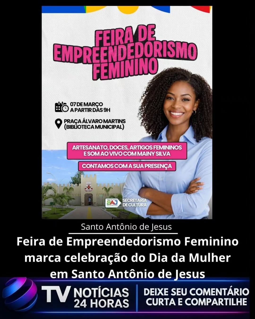 A prefeitura de Santo Antônio de Jesus, por meio da Secretaria Municipal de Cultura, realiza no próximo dia 7 de março a Feira de Empreendedorismo Feminino, em alusão ao Dia Internacional da Mulher. A iniciativa acontecerá a partir das 9h, na Praça Álvaro Martins, em frente à Biblioteca Municipal, reunindo empreendedoras locais em um espaço dedicado à valorização da produção feminina.