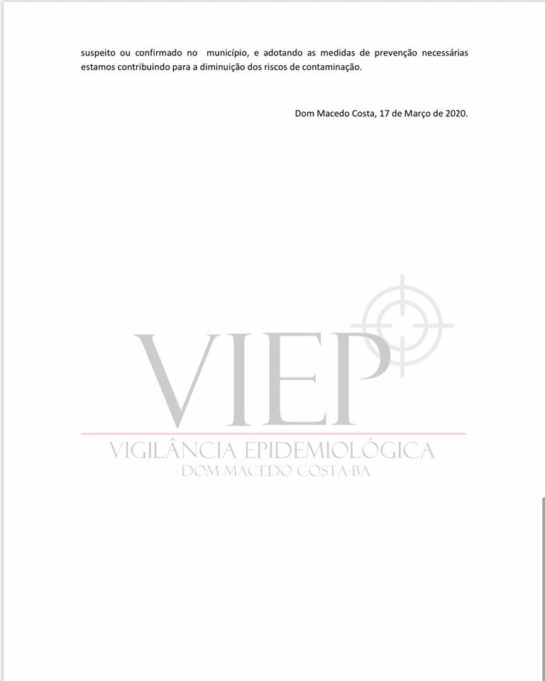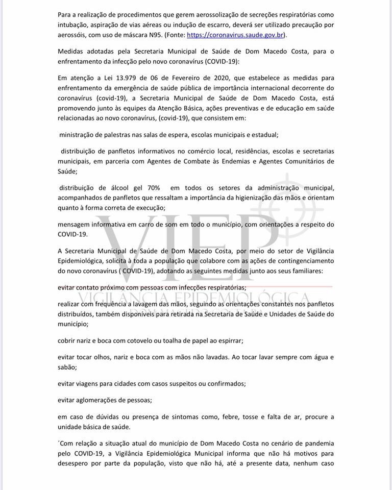 TV NOTÍCIAS 24 HORAS > CIDADES > DOM MACEDO COSTA > Prefeitura divulga normas técnicas de vigilância sanitária, em prevenção contra coronavírus