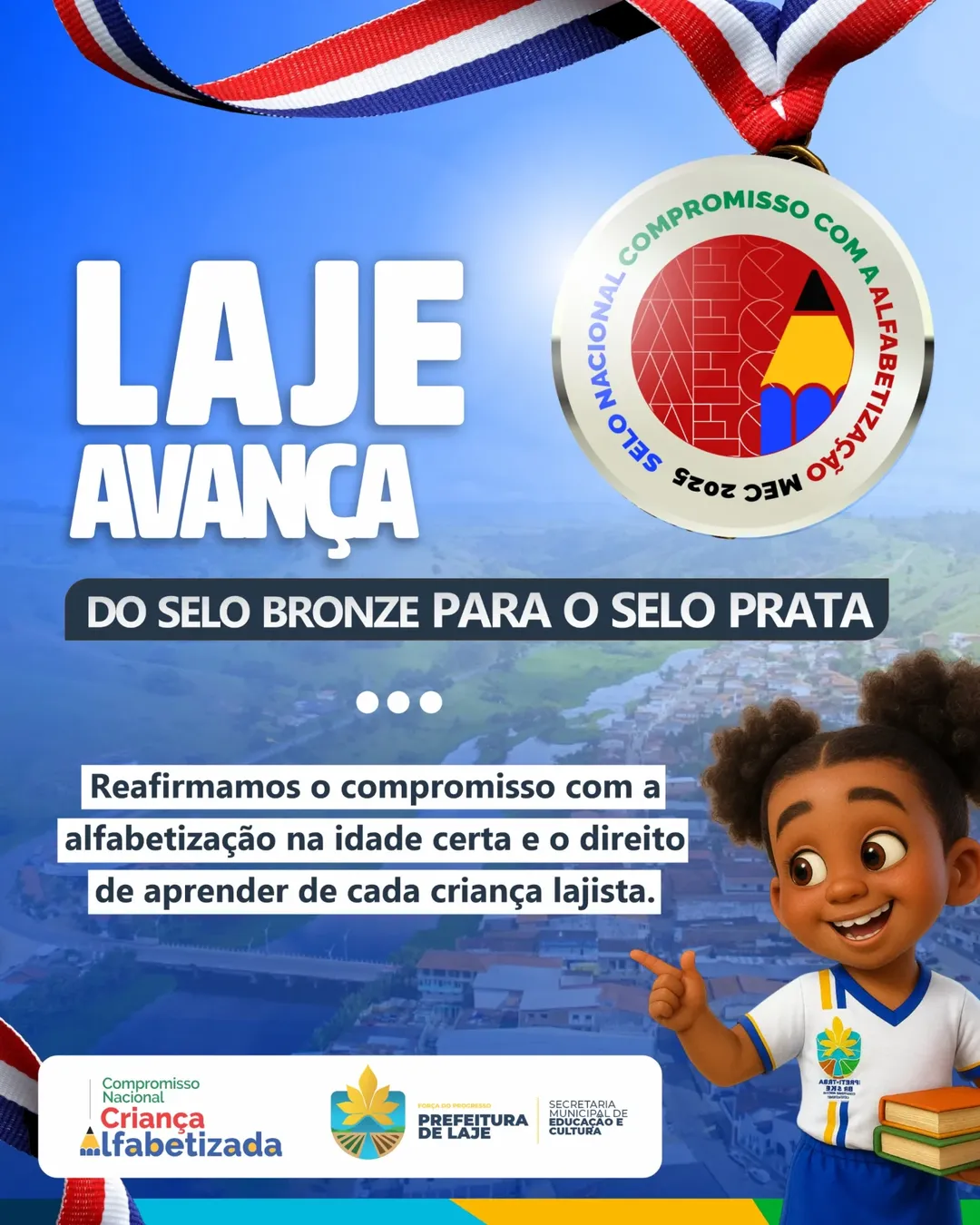 A rede pública municipal de ensino de Laje alcançou um novo patamar de desempenho técnico conforme os dados preliminares da 2ª Edição do Selo Nacional Compromisso com a Alfabetização, publicados nesta quarta-feira (21) pelo Ministério da Educação (MEC). Sob a atual gestão, o município registrou uma ascensão qualitativa, migrando da categoria Bronze para o Selo Prata.